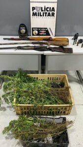 Dois homens foram presos por porte ilegal de armas e cultivo de maconha em Cáceres. As apreensões aconteceram após denúncia