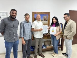 A a prefeita Eliene Liberato Dias realizou a entrega ao Pároco da Paróquia São Luiz, Padre Jair Fante.