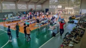 A Escola Técnica Estadual “Professor Adriano Silva” atua como ponto de apoio para os desabrigados, proporcionando assistência em meio à