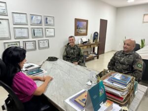 O Tenente-Coronel Alex Jesus Soares e o Tenente-Coronel Leandro Basto Pereira foram recebidos pela prefeita Eliene Liberato Dias em seu