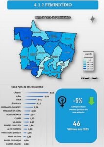 Região de Cáceres concentra a maior taxa de feminicídios em Mato Grosso, com 8,63 casos por 100 mil mulheres. Apesar