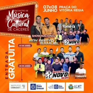 O Encontro de Música Cultural de Cáceres reúne Edy Brito e Samuel, Erre Som, Banda Novo Som e mais em