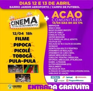 A Prefeitura de Cáceres realiza Mutirão de Cidadania no Jardim Aeroporto, com serviços essenciais, lazer e cultura para a comunidade.