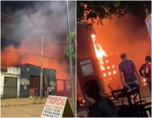 Incêndio de grandes proporções destrói veículos e danifica empresas de gás e lava jato em Mirassol D’Oeste. Não houve
