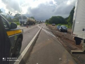 Três pessoas morreram e duas ficaram feridas na tarde de ontem, terça-feira (23) em um grave acidente entre um carro