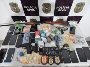 Operação resultou na apreensão de drogas, armas de fogo, aparelhos celulares e dinheiro